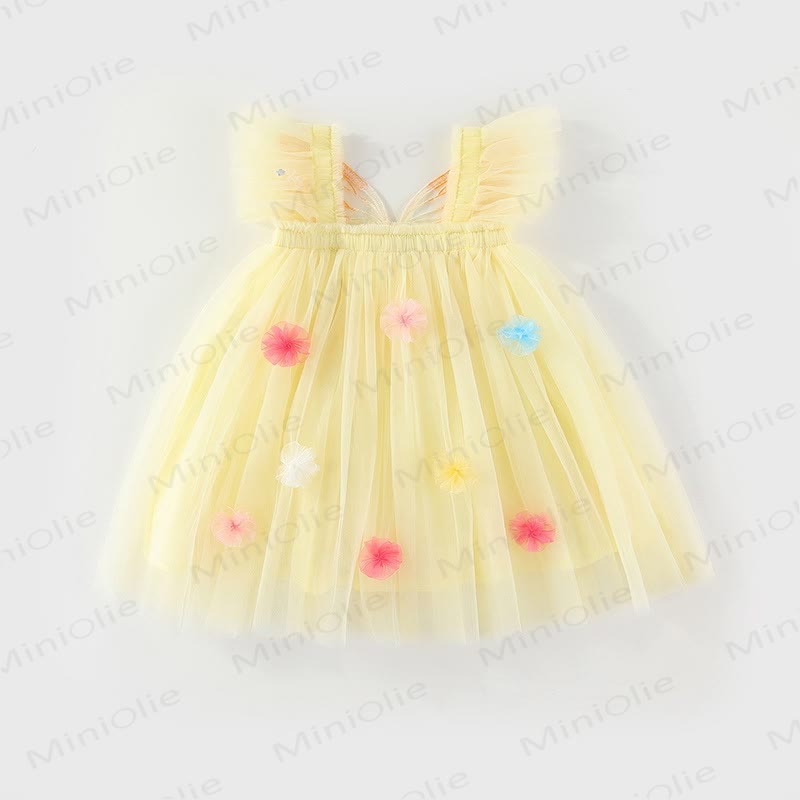 幼児用女の子用フラワーメッシュフライングスリーブDress
