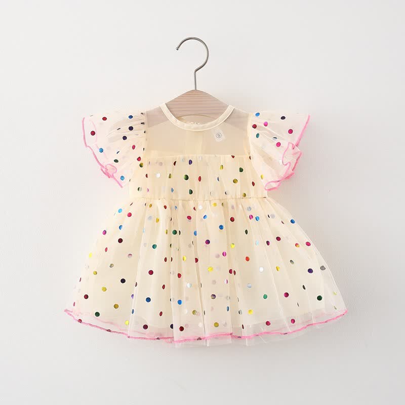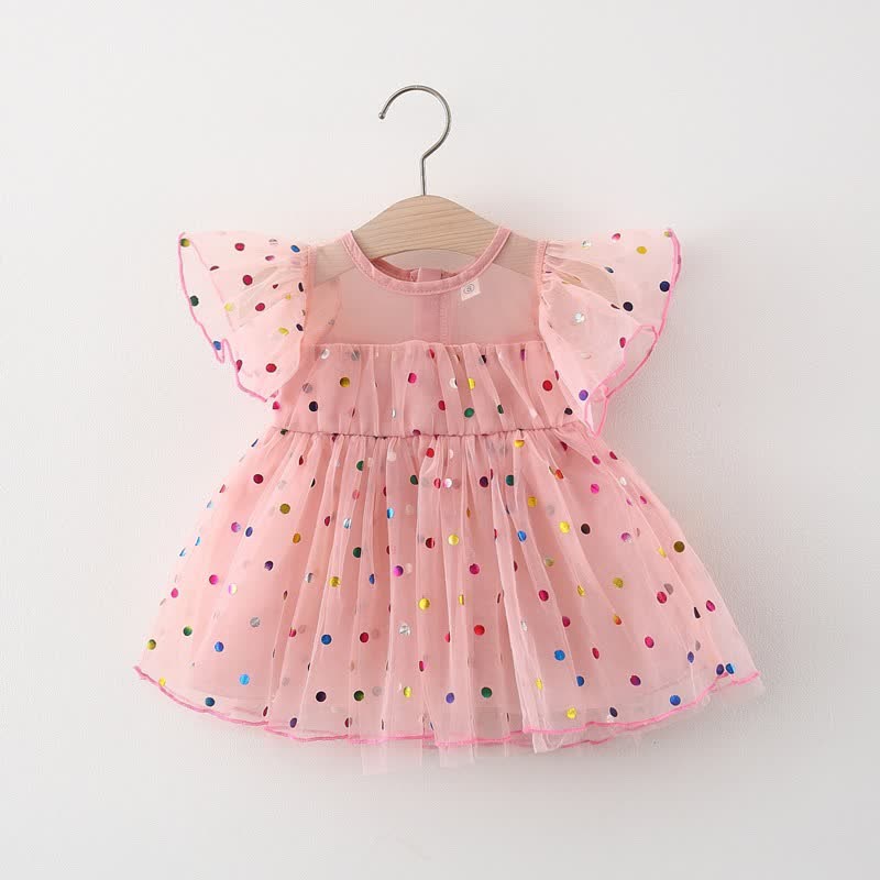 ベビー幼児女の子用リボン付きスパンコールメッシュDress