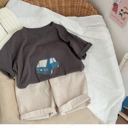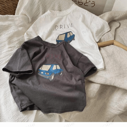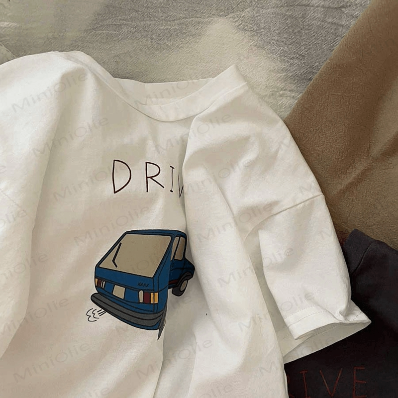 DRIVE キッズボーイズ ブルー カートゥーン カー Tシャツ