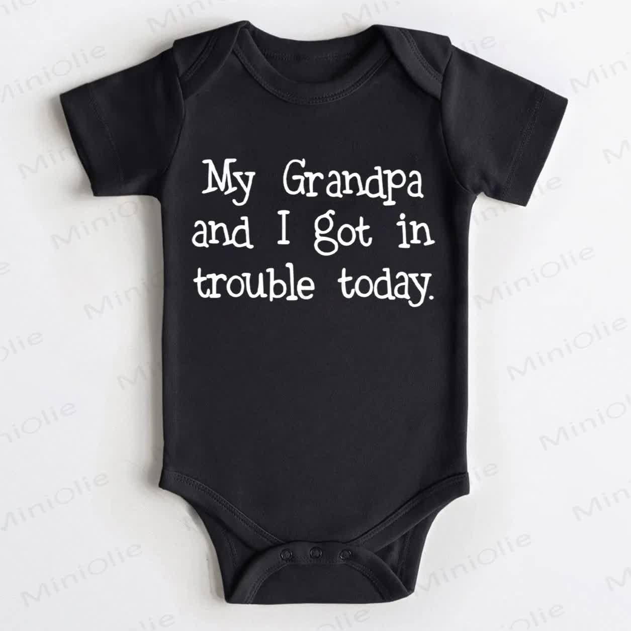 MY GRANDPA AND I GOT IN TROUBLE TODAY.ベビーホワイトボディスーツ