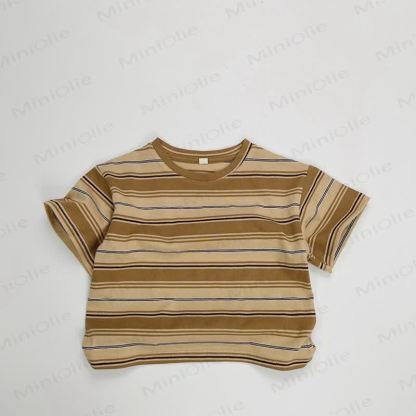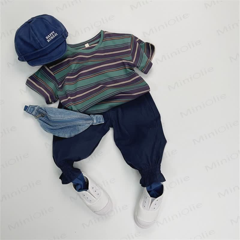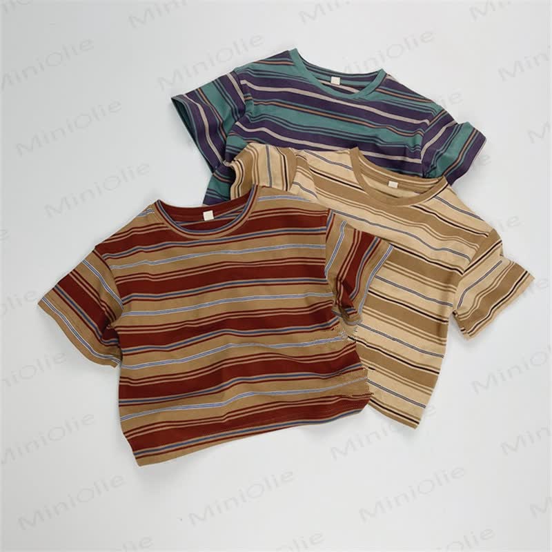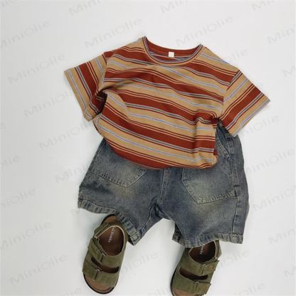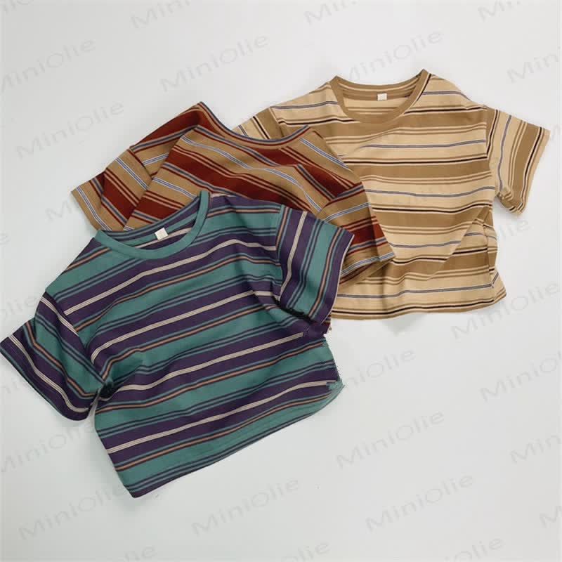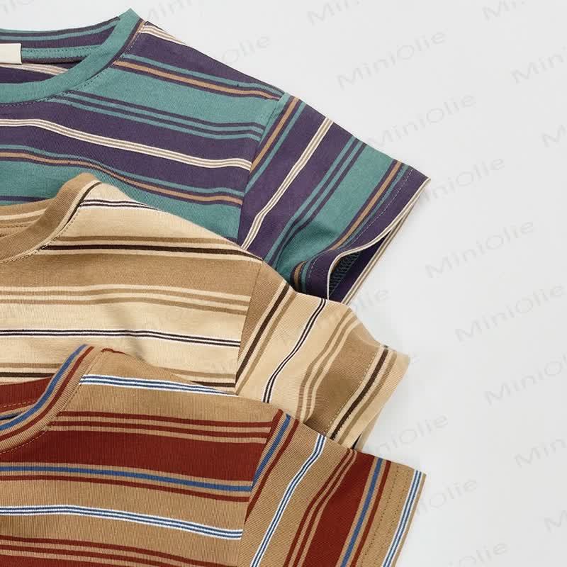 幼児用ゆったりストライプカラーブロックTシャツ